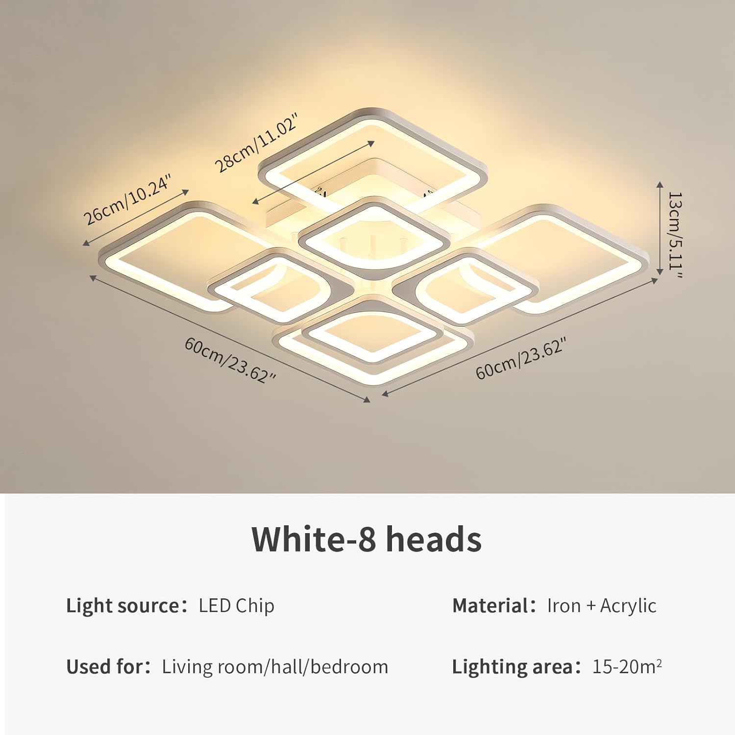 With a colour rendering index of 80+, this square chandelier emits a more stable and even light without flickering, providing a comfortable and warm lighting environment.