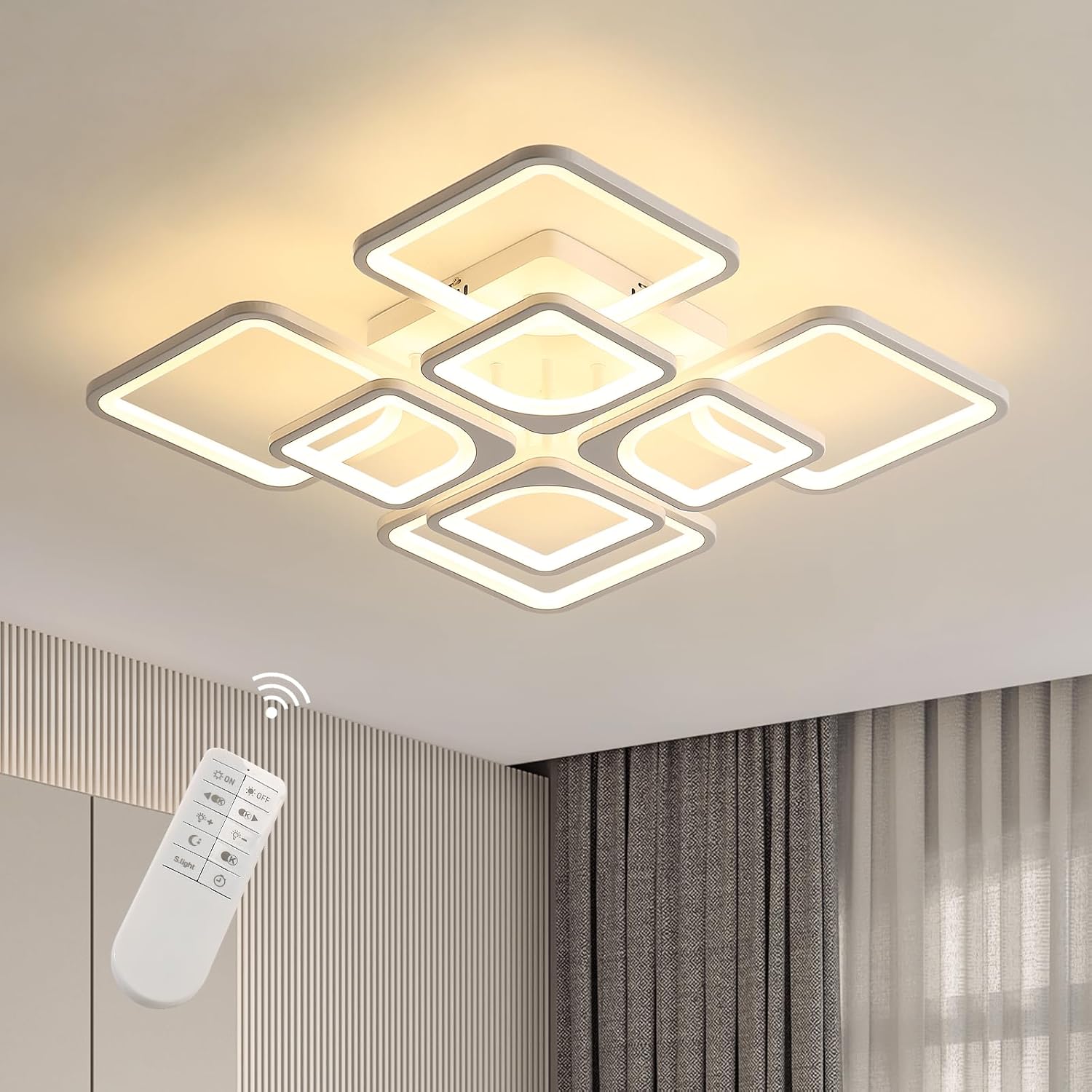 This white ceiling lamp adopts three control methods, wall switch/remote control/APP, multiple ways for you to choose.