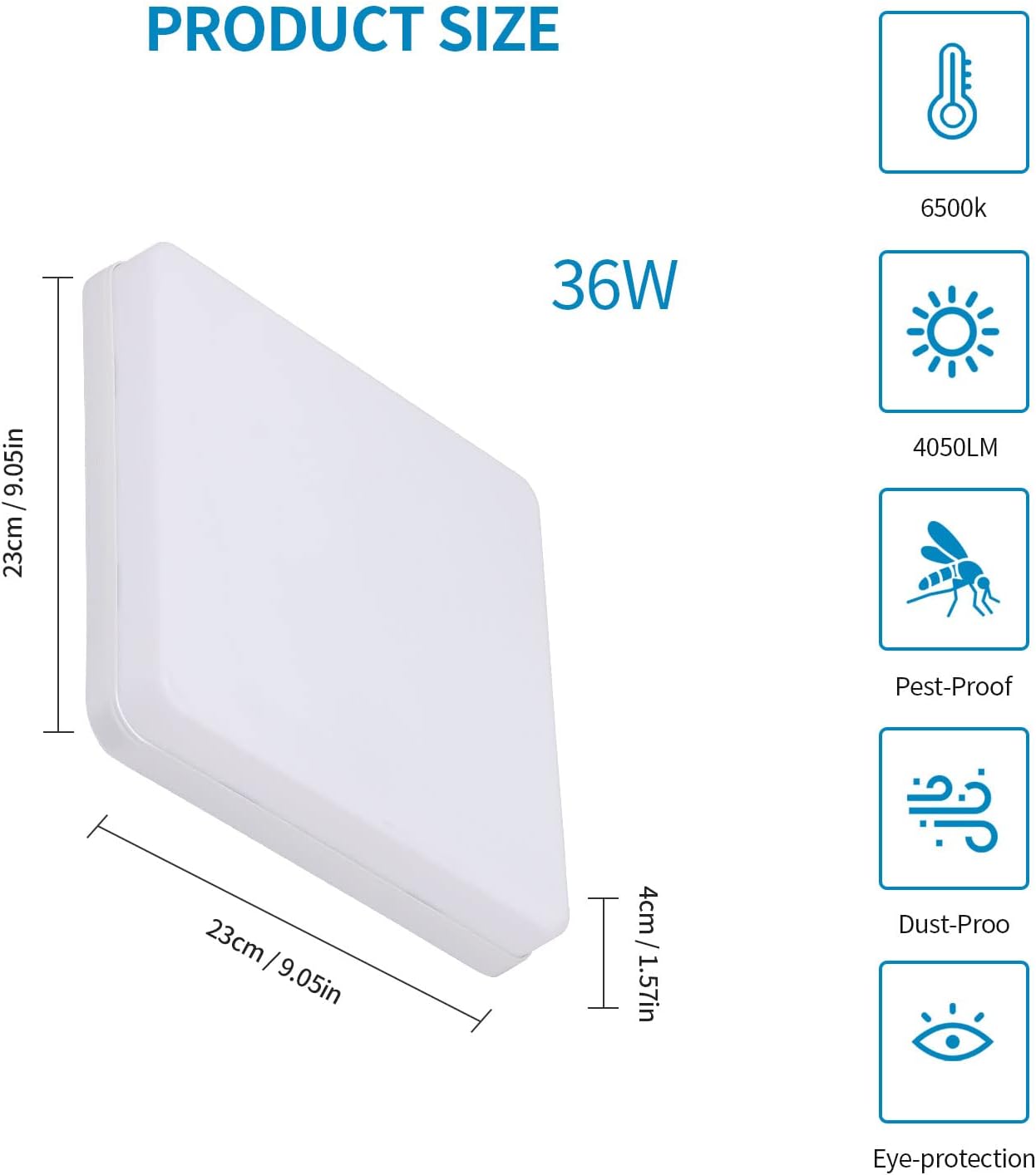 The 36W square LED ceiling light can produce up to 4050LM of high-brightness light. Its brightness is equivalent to that of a traditional 180W incandescent lamp, saving you over 87% on your electricity bill!