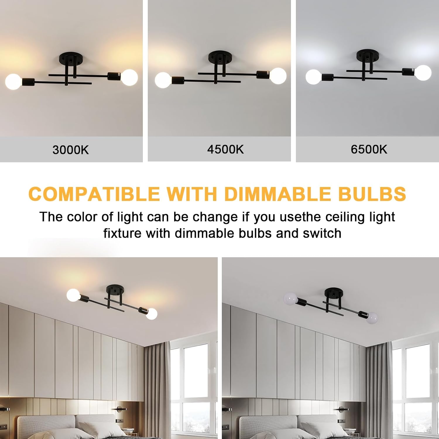Made from corrosion-resistant metal, this modern ceiling light is durable and easy to clean.