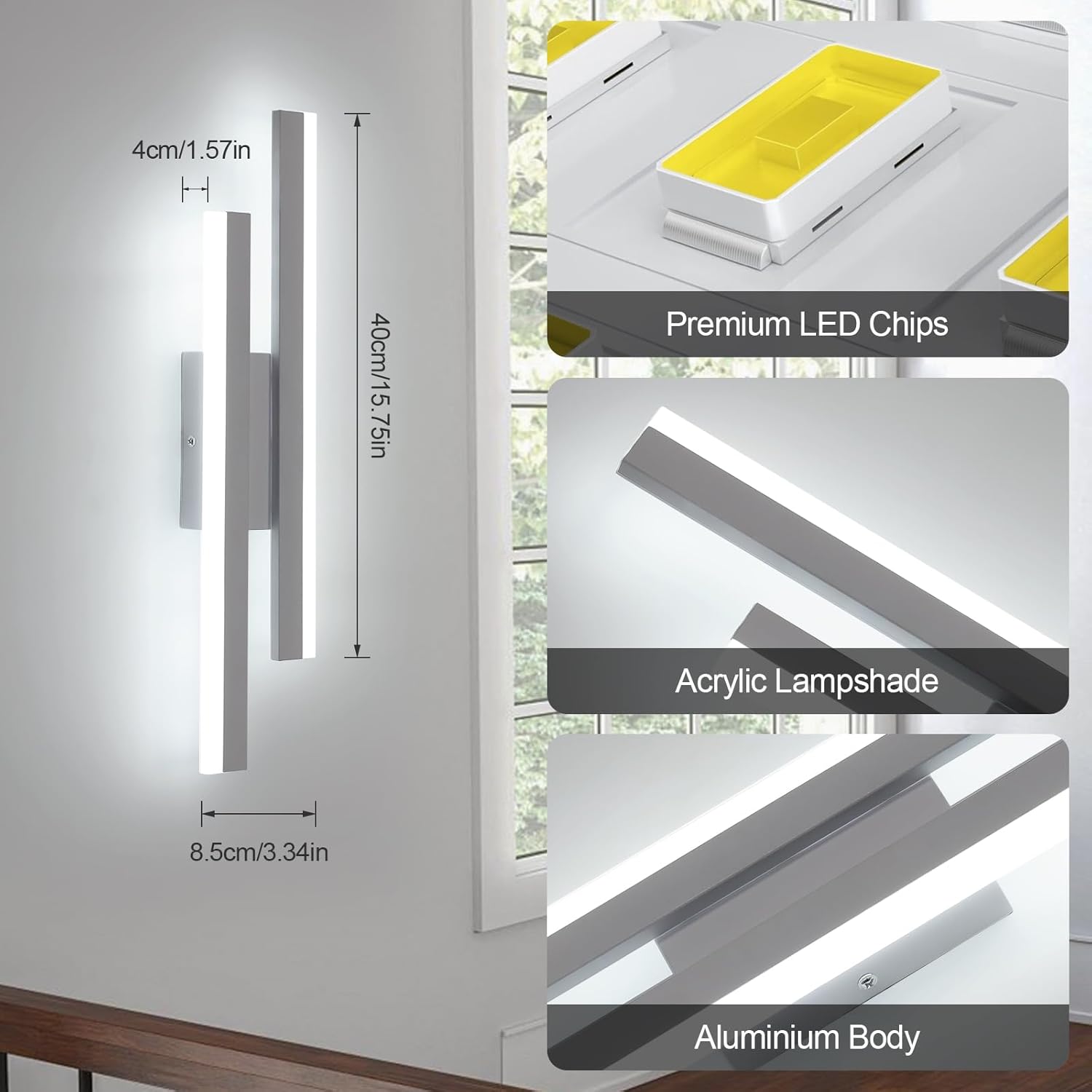 The wall light from 16W 6500K produces the right amount of soft ambient light.